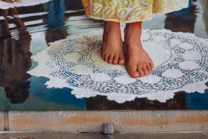 Por otro lado, Sojo, ha representado una instantánea en la que podemos ver una mujer bailando una ronda de jota poniendo el foco en el mantón bordado que porta. El Folklore, y la jota, se mantienen vivos en esta localidad a través de sus fiestas patronales, que se celebran anualmente.