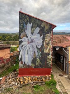 Continuando por la sinuosa carretera con magníficas panorámicas que lleva a Puebla de la Sierra, encontramos un pintoresco y recóndito municipio ligado a la ciudad de Osaka (Japón) -la localidad tiene un museo con obras de artistas japoneses-, lo cual invita al artista a representar una Magnolia Stellata. La flor destaca por su delicadeza, mostrando una paleta de color completa y un contraste amplio en contraposición a una paleta más reducida y apagada en el fondo, integrándose en el entorno.
