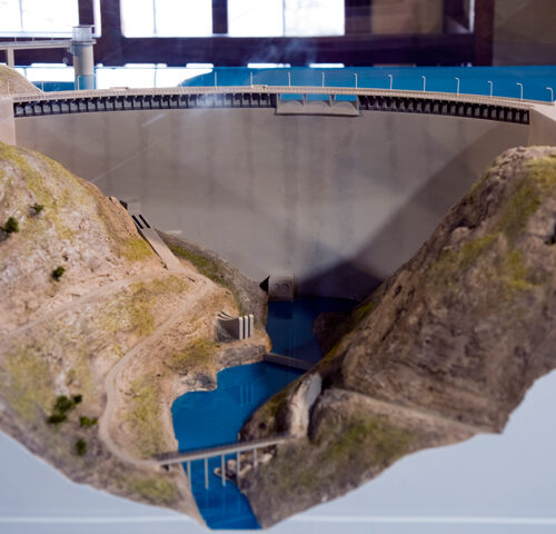 A través de paneles y maquetas realizadas a gran escala, se dan a conocer las numerosas infraestructuras e instalaciones hidráulicas realizadas, en su mayor parte, por el Canal de Isabel II.