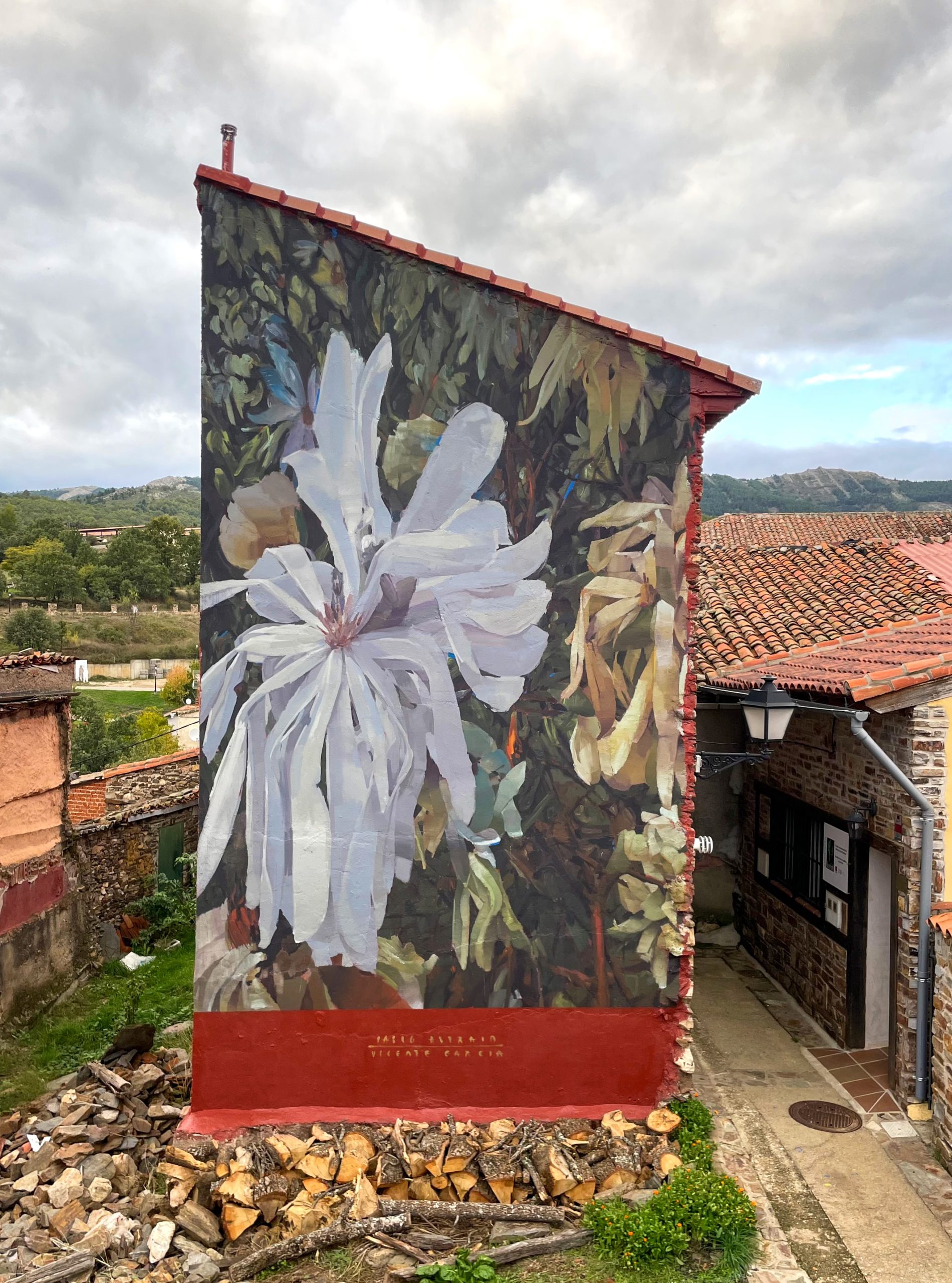 Para el proyecto Paredes que Hablan, Astrain ha realizado una pintura mural en Puebla de la Sierra. Por un lado, las dimensiones de la localidad, en contraste con la imponente Sierra del Lobosillo -cuya altitud máxima alcanza los 1865 m. sobre el nivel del mar- y, por otro lado, el hermanamiento con la ciudad de Osaka (Japón) -la localidad tiene un museo con obras de artistas japoneses-, invitan al artista a representar una Magnolia Stellata.