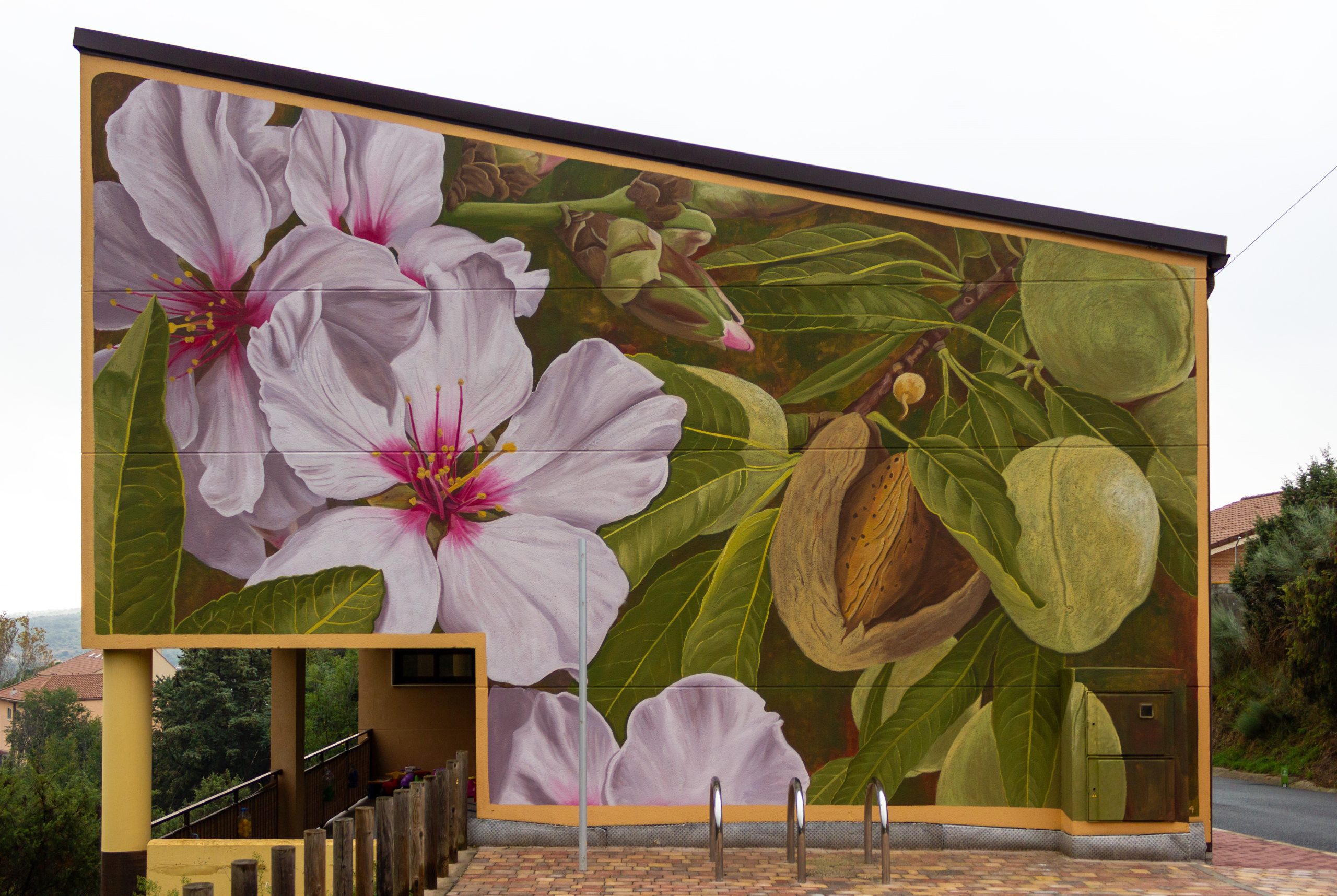 Para el proyecto Paredes que Hablan, Doa Oa ha realizado una pintura mural en Redueña que titula “Reforestando Prunus”. En esta obra, la artista representa un almendro, árbol característico del paisaje de esta localidad. Afirma Doa que su idea es “retratar la vegetación de un lugar para divulgar sobre la diversidad botánica y contribuir a la conciencia sobre el otro a través de conocer las diferentes especies vegetales”. Esta obra es, por tanto, un homenaje al almendro. En la composición se aprecian diferentes elementos, como la flor, hoja y también el fruto en diferentes estados de floración y maduración.