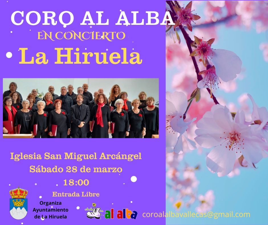 El próximo 28 de marzo el Coro AL ALBA de Vallecas ofrecerá un conciertoen la iglesia de LA HIRUELA.