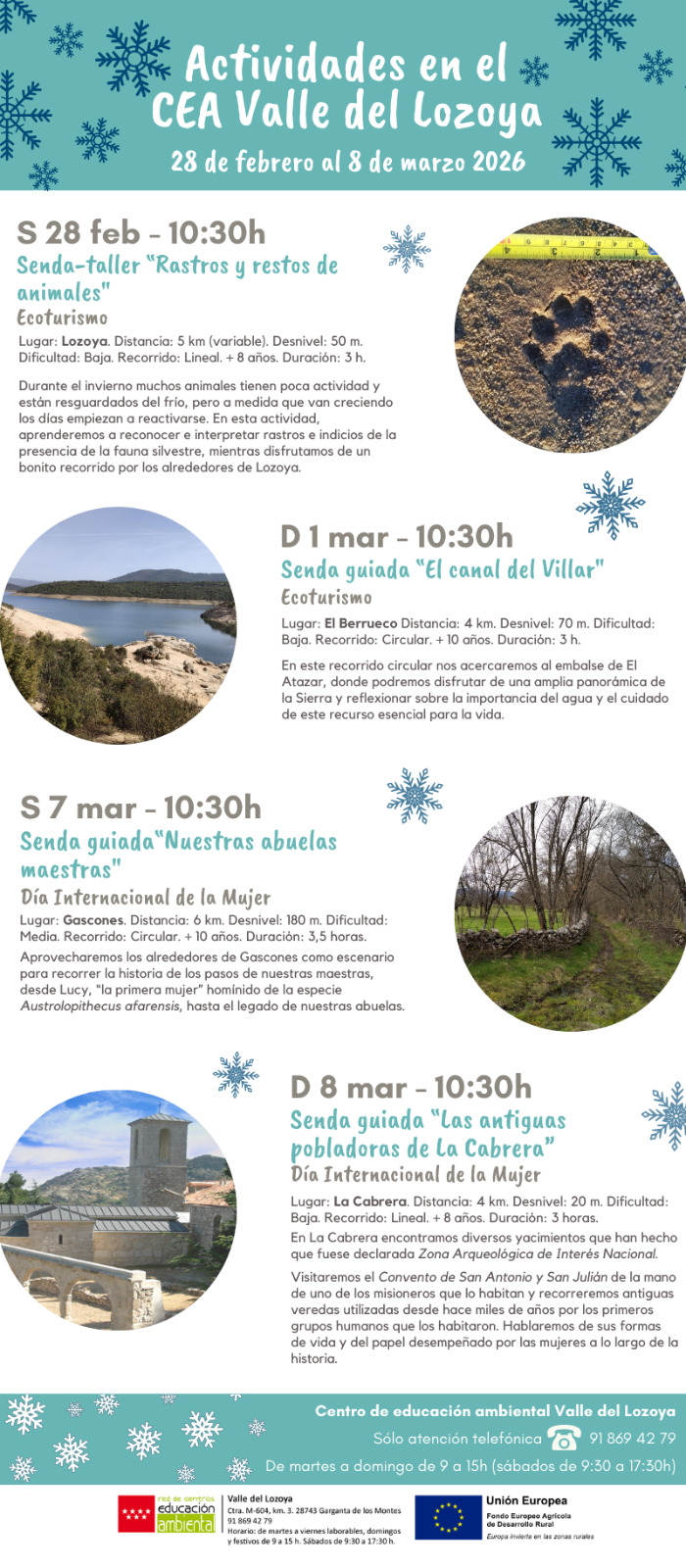Senda guiada “El canal del Villar” Ecoturismo -Actividades en el CEA Valle del lozoya 28 de febrero al 8 de marzo 2026